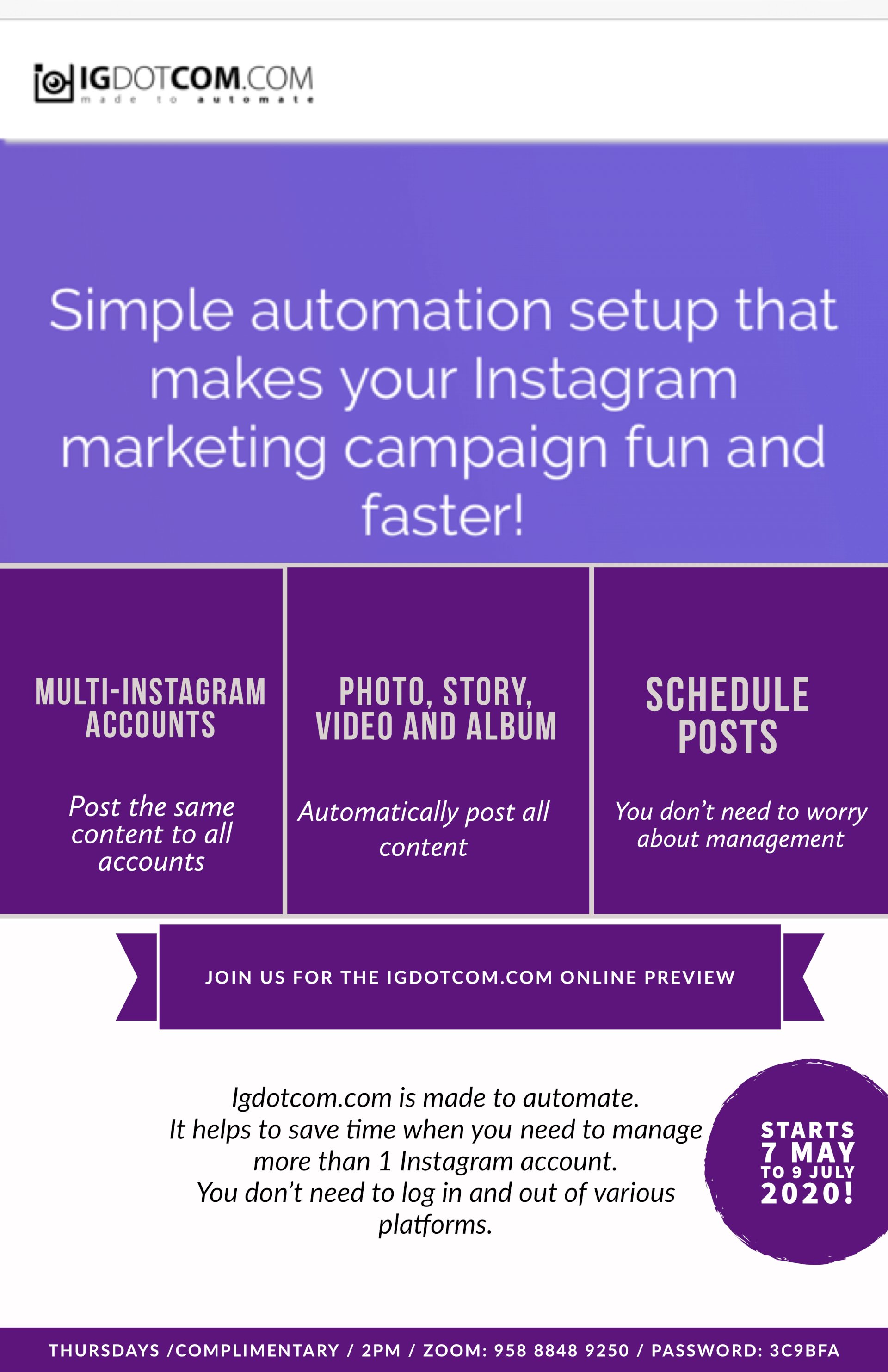 Grundy Academy will be conducting Free Online Instagram Automation sessions on Thursdays, 2pm starting from 7 May to 9 July 2020. Wherever you are Around the World, Join us for this session via Zoom Online.