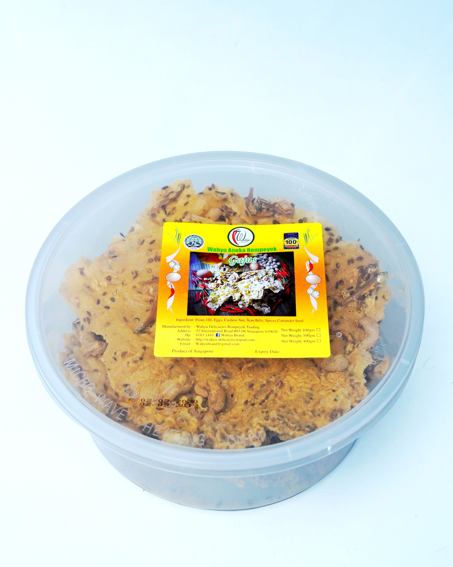 Rempeyek Cashew is another version with cashew nuts instead of peanuts which makes it even more nicer, fuller and delicious. For people who loves a rounder nuttier taste and crispy feeling, rempeyek gajus is definitely a must buy! Our best seller rempeyek in Singapore.