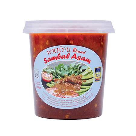 A common Indonesian style of sambal. Similar to the Malaysian belacan, but with a stronger flavor, more tangy and fermented. It is made with a combination of Asam, red and green peppers, terasi, sugar, salt, lemon and lime juice. Wahyu Brand has improved this recipe and it is well enjoyed by everyone. Surprisingly, the Sambal Asam is well loved by the western expat community.