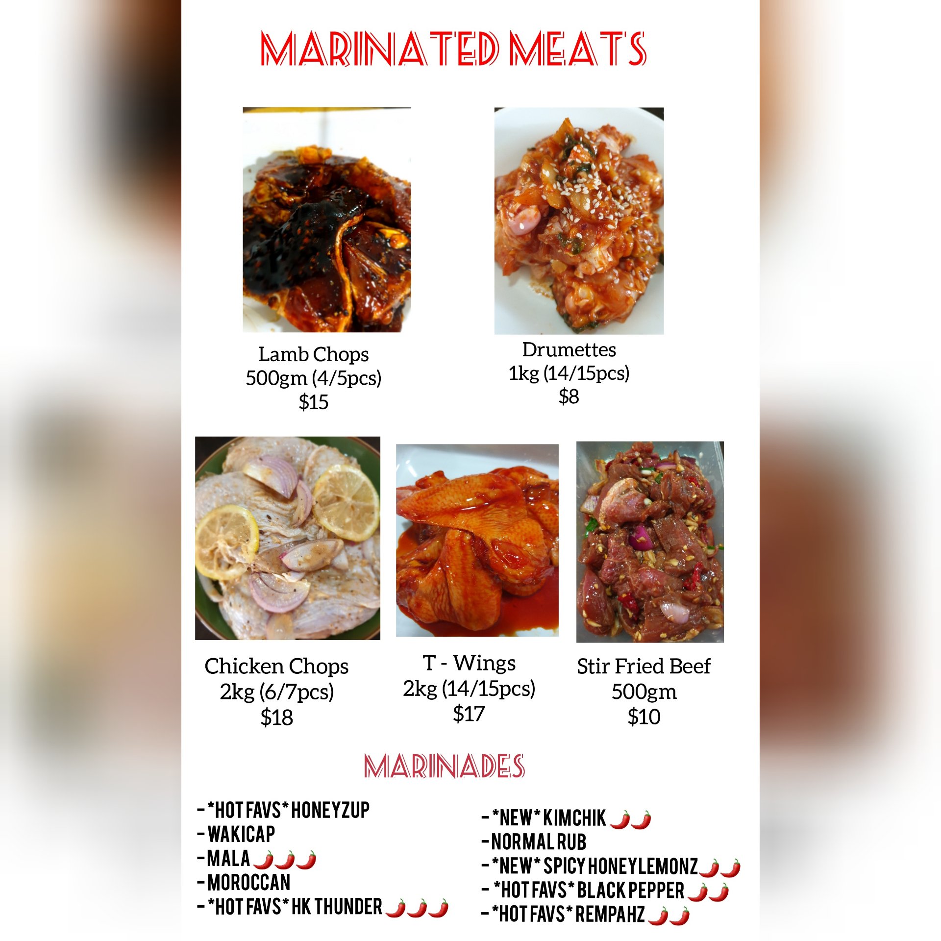 - Chicken Chops 2kg(6/7pcs) @ $18